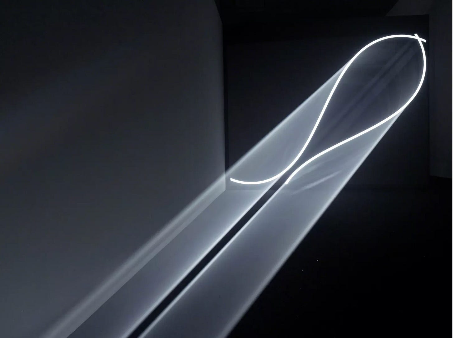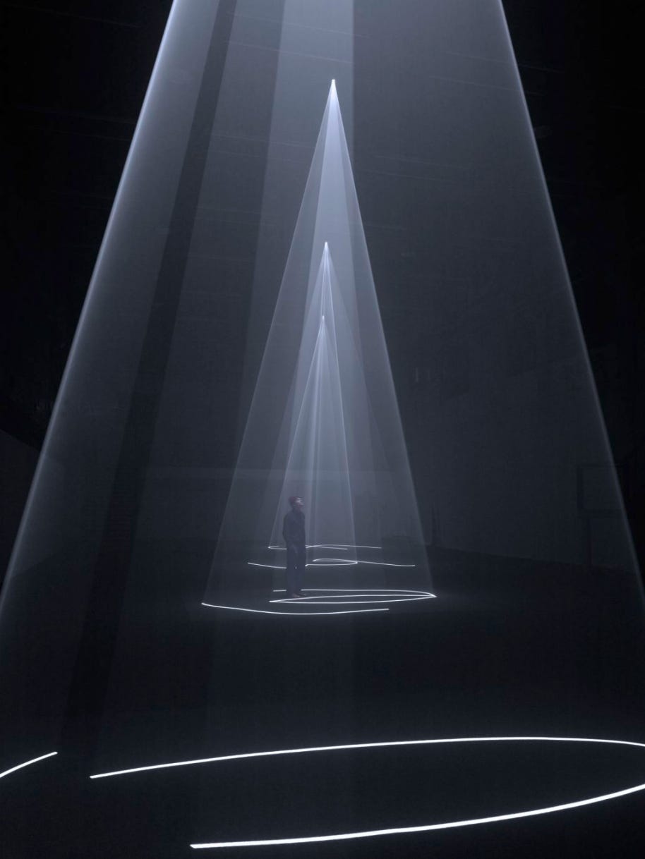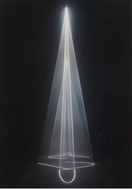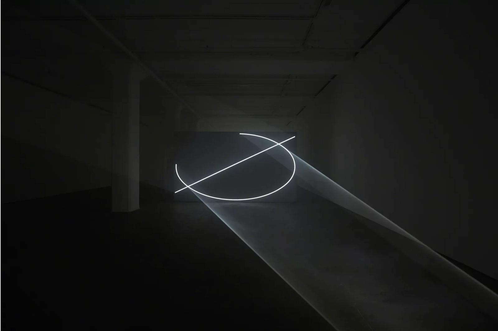 Active in the avant-garde cinema communities of London and New York in the 1960s and 1970s, McCall began working in film and performance before developing his ‘solid-light’ installations, beginning with Line Describing A Cone, 1973. In this iconic work, audiences moved freely within the space as a three-dimensional cone of light slowly emerged from a projector. P. Adams Sitney, in his landmark history of avant-garde cinema, Visionary Film: The American Avant-Garde, described McCall’s installations of the 1970s as, “the most brilliant case of an observation on the essentially sculptural quality of every cinematic situation.” Since the 1990s, technological advancements have allowed McCall to continue to develop these installations, to involve multiple projectors inscribing increasingly complex and interwoven forms. Recent solid-light works such as Split Second consist of multiple, interpenetrating solid-light forms creating a dynamic, activated space. McCall’s work makes visible the immaterial qualities of cinema, including light, space, and duration. His installations liberate the viewer to engage with their materials through both the body and the eye.
